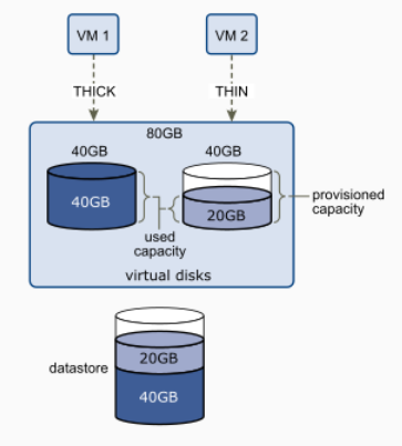 THIN은 초기 작업에 필요한만큼(20G)의 저장 공간 만 사용하고 더 많은 공간이 필요할 시