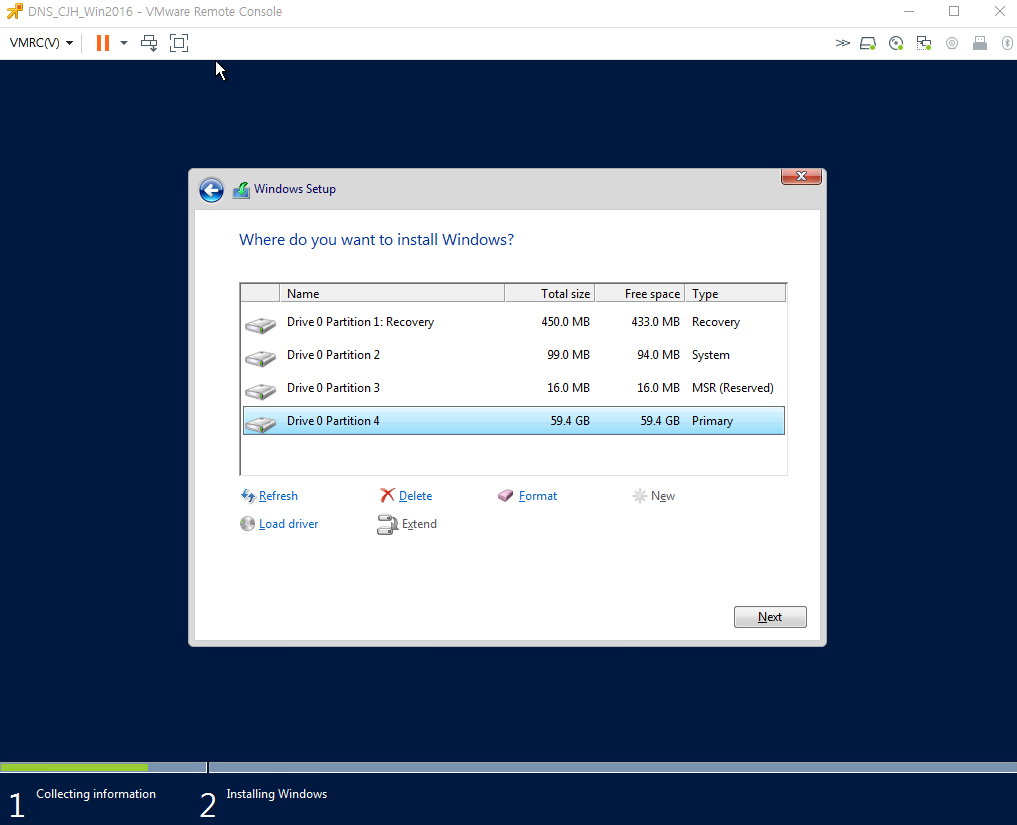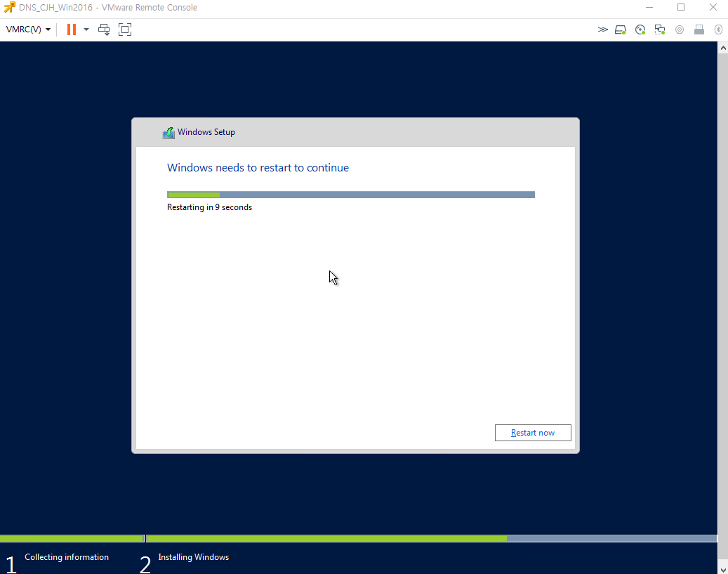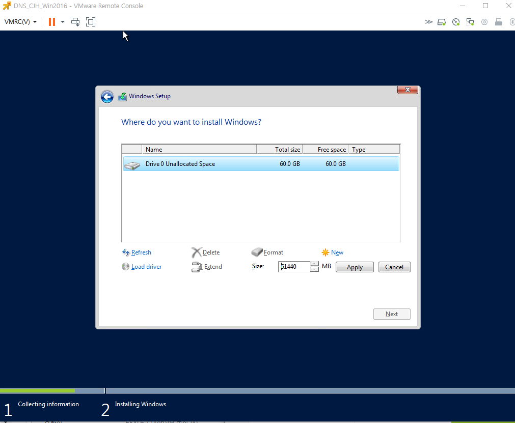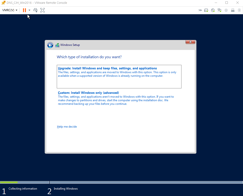 DNS 구축을 하기위해 가상머신에 Windows Server 2016을 설치하기로 하였다.