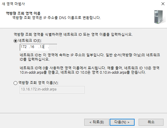 172.16.13.0/24를 사용하기 때문에 172.16.13까지 입력한다.