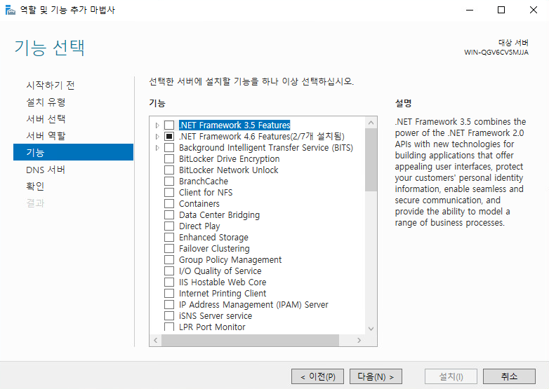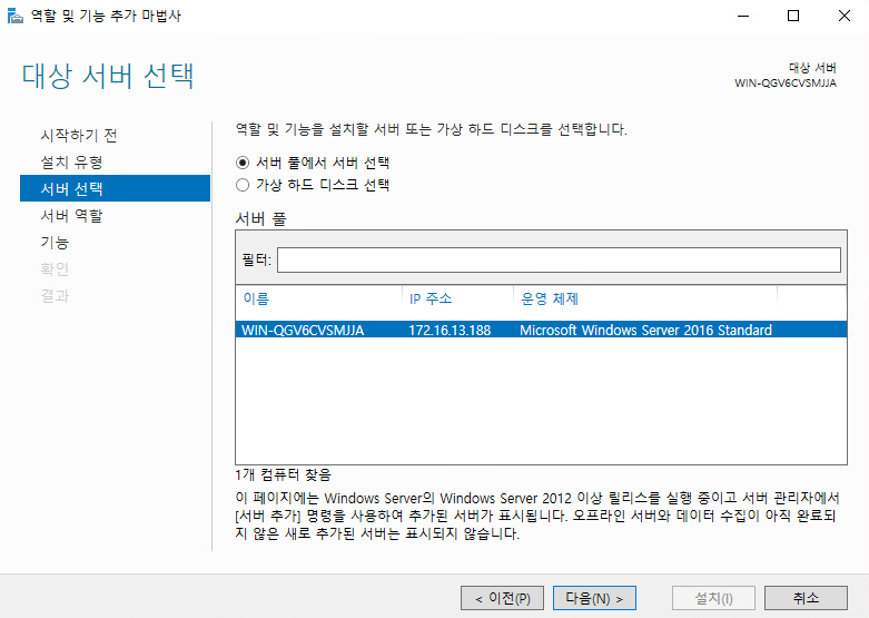 역할 및 기능 추가