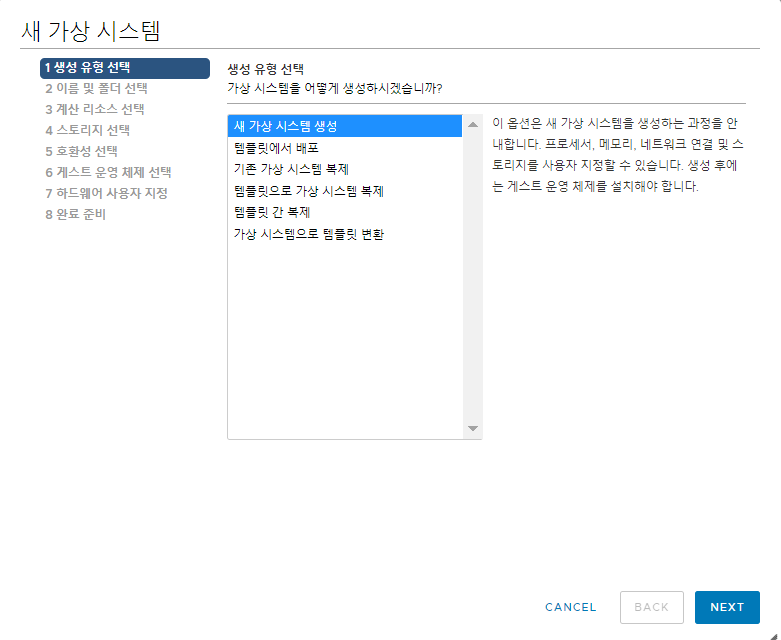- 생성 유형 선택 - 새 가상 시스템 생성