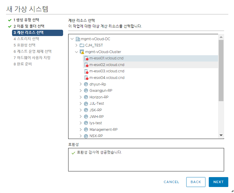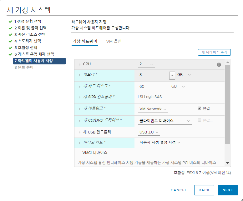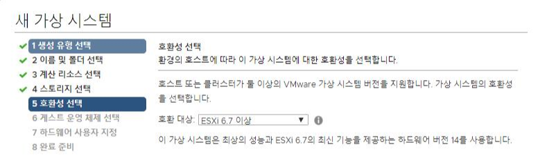 호환 대상을 선택하는데 ESXi6.7을 사용할 것이기 때문에 6.7이상으로 선택한다.