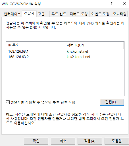 서버관리자- 도구 - DNS