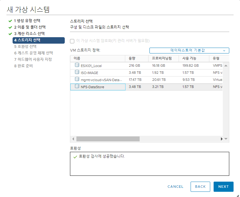 가상 시스템에서 사용할 스토리지를 선택한다.