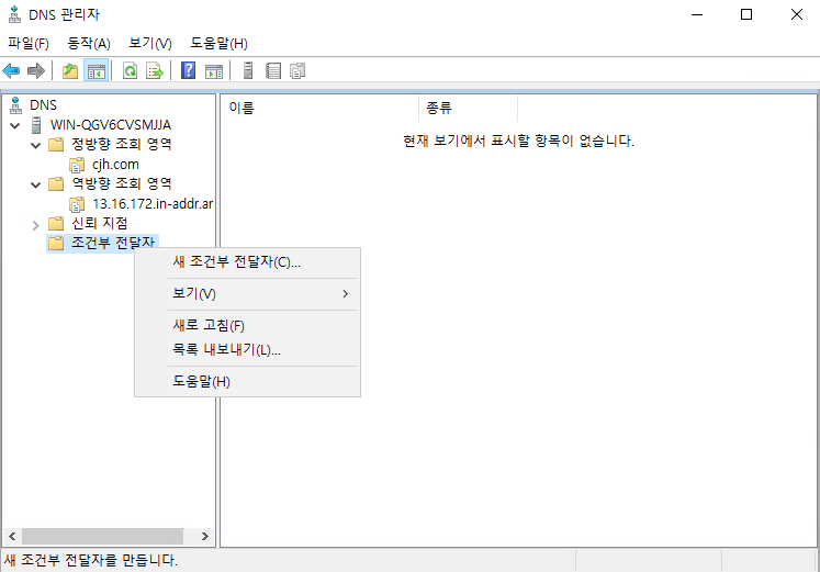 완료되면 서버관리자에DNS가 생겼다.