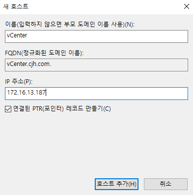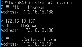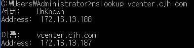 vCenter 도메인주소인 vcenter.cjh.com을 조회해본다.