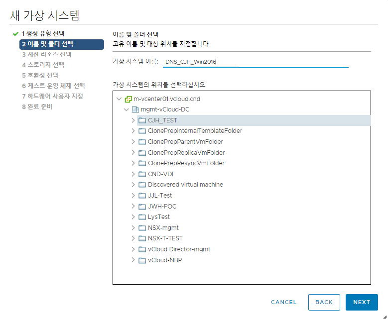 가상 시스템 이름을 정해주고 가상 시스템의 위치를 선택해준다.