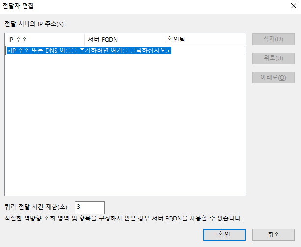 전달자로 쓸 주소를 입력하면 자동으로 서버 FQDN이 입력된다.