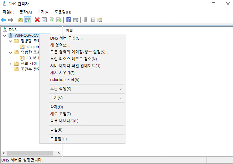DNS 도메인에 사용할 도메인을 입력하면 IP주소가 잡힌다.