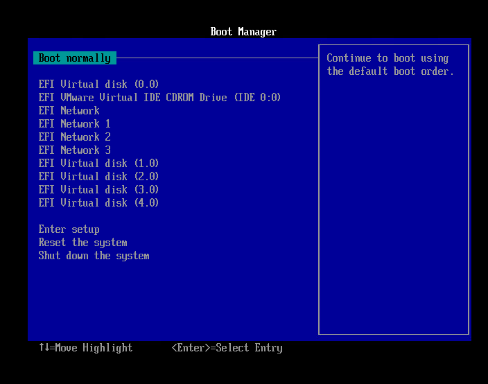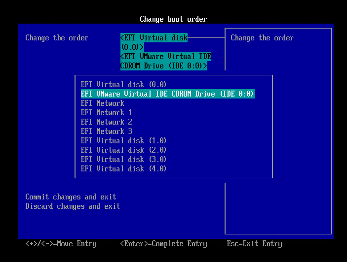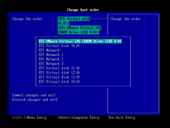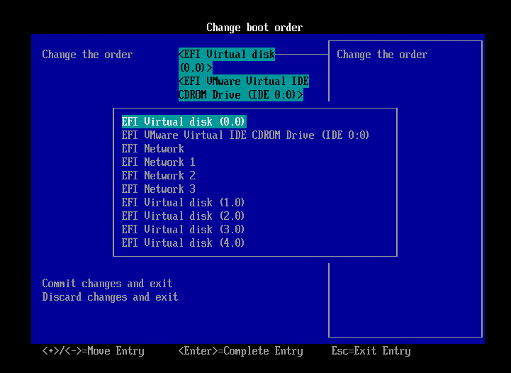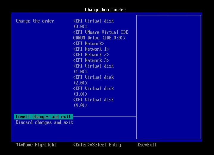 설치를 마치고 다시 virtual disk (0,0)을 우선순위 1순위로 바꾼다.