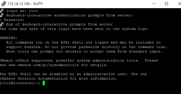 PuTTY로 172.16.13.195( 호스트1에 접속하여 업데이트를 진행하기 위해 SSH접속을 한다.)