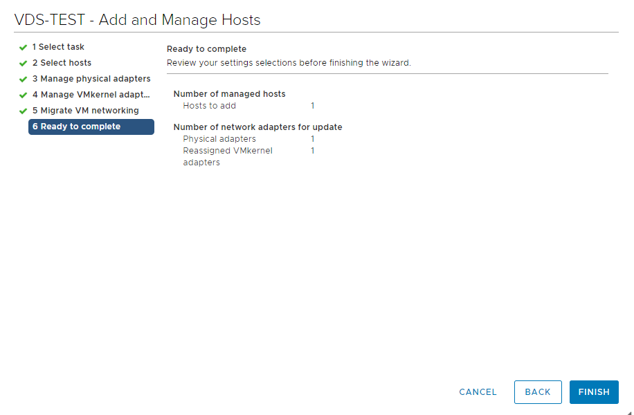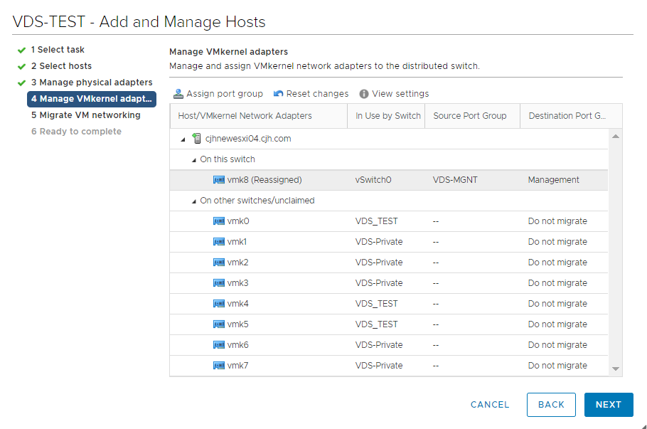 vSwitch0의 vmk8이 VDS-TEST라는 분산스위치의 Management 포트그룹으로 마이그레이션 되었습니다.