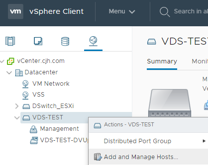 VDS_TEST 분산스위치에 managemt의 VMkernel Ports에