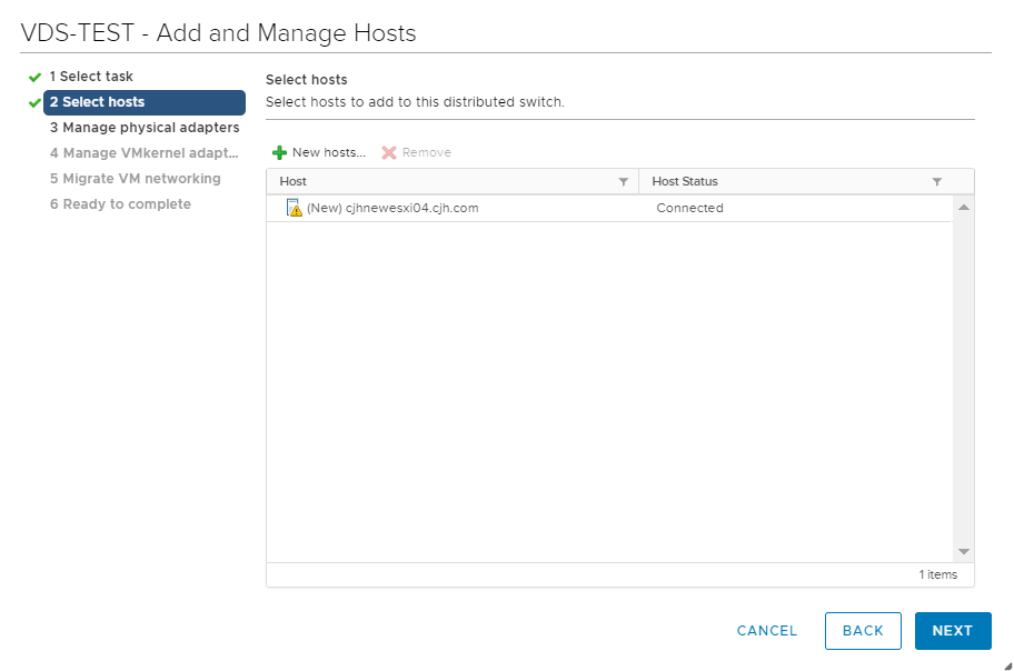 분산스위치에 호스트 추가 및 VMKernel 설정